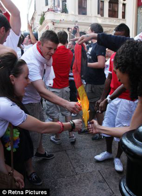 中新網(wǎng)6月28日電 據(jù)英國媒體報(bào)道,在英格蘭三獅軍團(tuán)慘敗給德國新戰(zhàn)車后,一名德國隊(duì)支持者遭遇聚集在倫敦萊切斯特廣場觀戰(zhàn)的英格蘭球迷的圍堵。