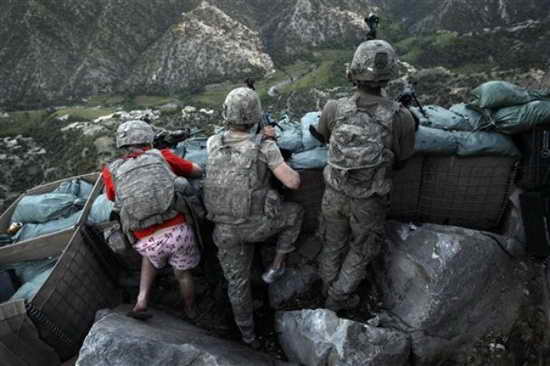 美聯(lián)社的一名攝影記者抓拍的一張照片顯示,19歲的陸軍專業(yè)軍士扎查里伊-波伊德在位于阿富汗庫納爾省科里加爾山谷的雷斯特雷波火力基地內(nèi)進入防御陣地,基地當時遭到了塔利班的火力射擊。他當時穿著一件四角內(nèi)褲,內(nèi)褲上印著彩紅色的“我愛紐約”字樣。《紐約時報》12日在其頭版刊登了這張照片。