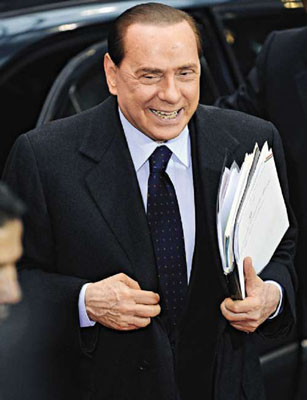 中新網(wǎng)12月14日電 英國(guó)媒體消息,意大利總理貝盧斯科尼又在公眾場(chǎng)合“獻(xiàn)丑”了!他十一日在布魯塞爾出席歐盟一個(gè)首腦會(huì)議時(shí),和與會(huì)首腦們分享不同時(shí)代女性所穿內(nèi)衣褲的畫(huà)作,把首腦們嚇一跳。