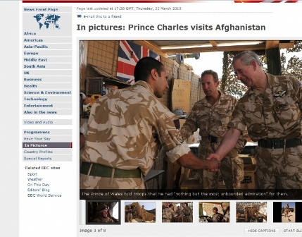 據(jù)報(bào)道,查爾斯25日直入塔利班活動(dòng)較為頻繁的阿富汗南部赫爾曼德省,慰問駐扎在當(dāng)?shù)氐挠④娛勘。這是阿富汗戰(zhàn)爭(zhēng)以來查爾斯首次慰問駐阿前線官兵。