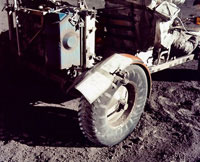 眾所周知,月球表面都被厚厚的月塵覆蓋,美國(guó)宇航員拍攝了很多他們?cè)谠虑蛏狭粝碌哪_印。月球和火星異,F(xiàn)象研究專家約瑟夫·斯金波對(duì)這些證據(jù)一直心存質(zhì)疑。從美國(guó)宇航員的照片上看,他們的月球車停靠在登陸艙很遠(yuǎn)的地方,圖片上沒(méi)有車轍痕跡,就好像那輛登陸車是從太空艙飛過(guò)去的。“我們當(dāng)然可以假設(shè)月球表面十分堅(jiān)硬,不足以讓登陸車留下痕跡?墒牵诘顷戃嚺赃厖s有很多腳印,甚至在登陸車的下面也能看到!