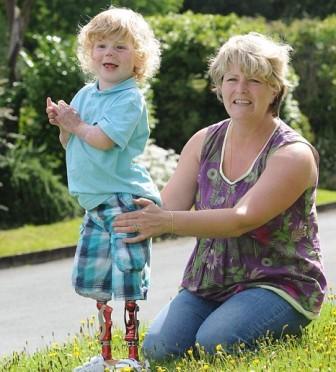 中新網(wǎng)7月29日電 英國一名3歲男童前年患上腦膜炎,要切除雙腿,最近他裝上1.25萬英鎊的仿生義肢,并重新學(xué)會(huì)走路。