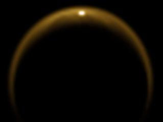 由于土衛(wèi)六上空厚厚的大氣層的干擾,土衛(wèi)六表面所反射的太陽光大多數(shù)都被遮蔽。“卡西尼號”探測器也是在偶然間拍下了這張罕見的照片。照片拍攝于2009年7月8日。