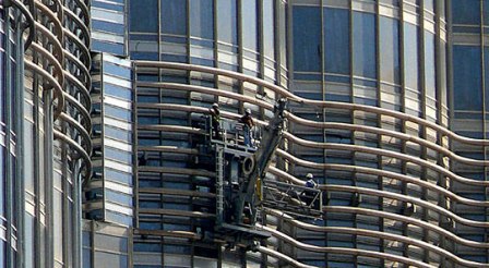 中新網(wǎng)1月6日電 被一根繩子吊在窗外,冒著生命危險為摩天大樓擦洗窗戶的擦窗工人可謂是一份需要勇氣的職業(yè),而又有誰能夠想象為“世界第一高塔”迪拜哈利法塔擦洗窗戶的工人該是多么“偉大和勇敢”。