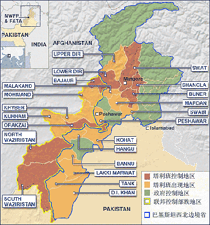 中新網(wǎng)5月14日電 由BBC所制作的一份關(guān)于巴基斯坦西北邊境省份的地圖顯示該省只有38%以及周?chē)牡貐^(qū)掌握在政府的控制之下。