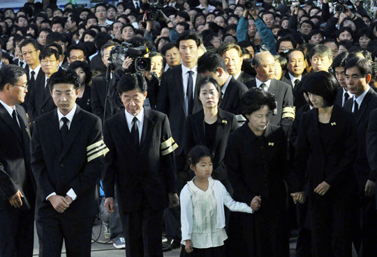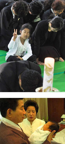 當(dāng)時(shí),盧武鉉的孫女盧緒恩(音)似乎并不知道爺爺去世,顯得天真無暇,這更使旁邊人悲痛萬分。發(fā)喪時(shí),天真的小緒恩坐在權(quán)良淑女士旁邊向遺像做出“V”型手勢。