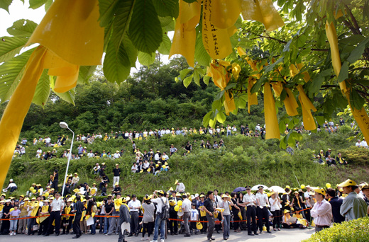 中新網(wǎng)5月29日電 據(jù)韓國《朝鮮日報》報道,當?shù)貢r間29日下午6時8分(北京時間下午5時8分),韓國前總統(tǒng)盧武鉉的靈車來到位于水原的“蓮花場”(音譯)火化場,F(xiàn)場已被象征盧武鉉的黃色帶子“覆蓋”,700多名警察部署在火化場,嚴格控制一般人出入。