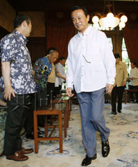 中新網(wǎng)6月2日電 為推動本月起開始的夏季“清涼商務”活動,日本首相麻生太郎和全體內(nèi)閣成員2日上午穿上沖繩傳統(tǒng)清涼夏裝出席了內(nèi)閣會議。