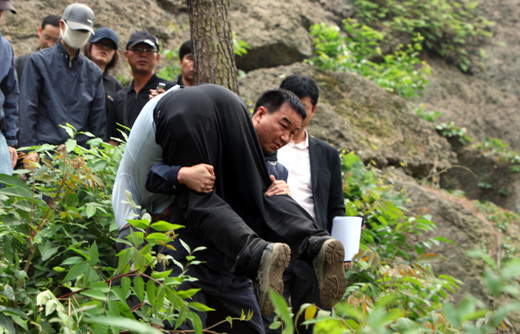 當(dāng)李某走到盧武鉉跳崖的落地點貓頭鷹巖下方時,他哭出了聲。李某跌坐在地,半天沒有回過神來。遺屬方面代表、前青瓦臺秘書室長文在寅在現(xiàn)場向李某等人詳細(xì)地詢問了發(fā)現(xiàn)盧武鉉的經(jīng)過。
