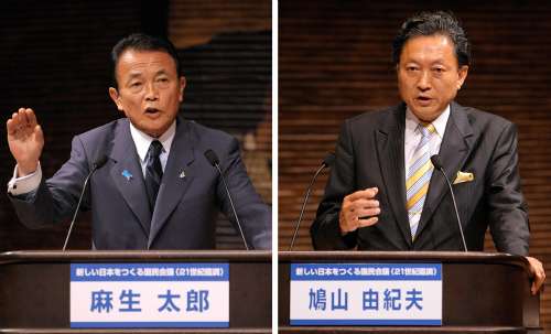 據(jù)日本共同社報道,麻生表示民主黨的政策是“沒有財源的亂花錢,是不負(fù)責(zé)任。不能把日本安全交給一個在安全保障政策上沒有一貫性的政黨”,對民主黨的執(zhí)政能力質(zhì)疑。鳩山則稱“執(zhí)政黨的政策是官僚主導(dǎo)制定,把日本變成了一個官員到民間企業(yè)就職多、浪費(fèi)多的國家。這是官僚主導(dǎo)的政治打破不了的”,訴說政權(quán)更迭的必要性。