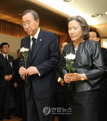 在金大中生前接受治療的醫(yī)院臨時(shí)設(shè)立的靈堂中,潘基文表達(dá)了對(duì)金大中逝世的難過(guò)之情和失落感。他向金大中的遺孀、家人及韓國(guó)人民和政府表示深切慰問(wèn)。