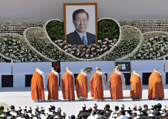 據(jù)韓國(guó)《中央日?qǐng)?bào)》報(bào)道,以韓國(guó)總統(tǒng)李明博和前總統(tǒng)金泳三為首的主要人士以及駐韓使節(jié)、遺屬等參加遺體告別儀式,預(yù)計(jì)規(guī)模將是史上最大。政府現(xiàn)在邀請(qǐng)了2萬(wàn)4000人參加遺體告別儀式。