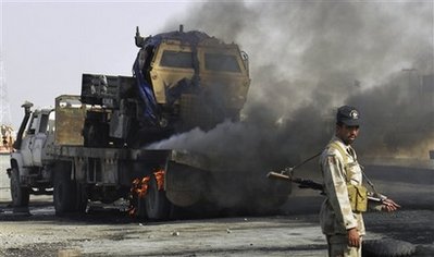 警方稱,車隊從巴基斯坦的卡拉奇出發(fā)前往阿富汗坎大哈,在巴阿邊境遭襲。