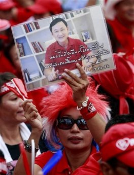 中新網(wǎng)10月18日電 泰國萬名紅衫軍17日下午在首都曼谷舉行集會,要求政府公布就8月17日遞交的赦免前總理他信請愿書審查工作的進展。他信通過電話向支持者發(fā)表10分鐘講話,表示“泰國政府害怕他回國”,將繼續(xù)和平斗爭。