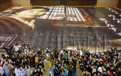 該縣長門商工會議所青年部等發(fā)起了挑戰(zhàn)拼畫紀(jì)錄的活動,得到了市民的支持。照片的征集從去年4月開始。去年12月31日晚,約220名市民用了6個多小時(shí)完成了拼畫。市民在微博網(wǎng)站“Twitter”上發(fā)布的消息也起到了宣傳效果,應(yīng)征照片中有的來自海外。