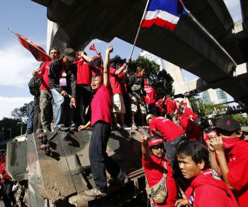 泰國最高法院最近裁定充公他信逾半資產,惹來他信的支持者強烈反對。反獨裁民主聯(lián)盟(UDD,俗稱“紅衫軍”)計劃動員百萬民眾,星期五開始在曼谷周邊地區(qū)集合,之后再在曼谷市內多處,包括皇家田廣場和國會大樓前,舉行百萬人反政府集會和示威。紅衫軍領袖聲言集會會以和平方式進行,目標是三日內迫使總理阿披實解散國會,重新大選。他們更表示,剛頒布的國內安全法不會阻止他們的活動。