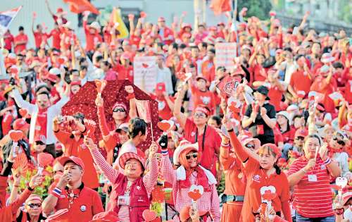 中新網(wǎng)3月14日電 綜合媒體報道,泰國首都曼谷14日出現(xiàn)一片紅海,數(shù)以萬計支持前總理他信的紅衫軍舉行近年最大型的示威,他們向總理阿披實發(fā)出最后通牒,限令要在今日內(nèi)宣布解散國會,否則會采取更激烈的示威行動,揚(yáng)言要在4天內(nèi)推翻現(xiàn)有政府,又警告沖突在所難免。
