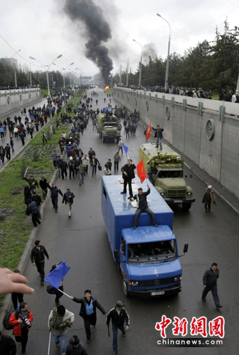 中新網(wǎng)4月8日電 當(dāng)?shù)貢r(shí)間4月6日開始,數(shù)千名吉爾吉斯斯坦反對(duì)派示威者在首都比什凱克市中心集會(huì)游行,并與防暴警察發(fā)生沖突,逐漸演變成騷亂,造成數(shù)百人傷亡。反對(duì)派扣押政府高官,占領(lǐng)部分政府機(jī)構(gòu)以及國家電視臺(tái),并稱最終目的是要總統(tǒng)下臺(tái),奪取國家政權(quán)。吉總統(tǒng)巴基耶夫下令全國進(jìn)入緊急狀態(tài),并宣布實(shí)行宵禁。