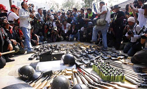當(dāng)天上午,刑事法院批準(zhǔn)逮捕納塔武、烏伊拉和乍都蓬等20名紅衫軍領(lǐng)袖,罪名是違法帶領(lǐng)示威者占領(lǐng)曼谷市商業(yè)區(qū)拉差巴頌路口。烏伊拉暗示,如果他們被捕,示威會(huì)升級(jí)。另外,警方拘捕兩名懷疑藏有燃燒彈的紅衫軍守衛(wèi)。