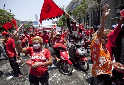 泰國政府表示正尋求與紅衫軍談判,以結(jié)束政治危機。但紅衫軍堅持阿披實須立即解散國會,若他答應(yīng),示威者將實時回家。約500名親政府黃衫軍昨日聚集于勝利紀(jì)念碑,呼吁紅衫軍回家。