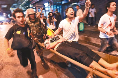 雖然軍方警告將會(huì)武力鎮(zhèn)壓示威者,許多外國(guó)旅客卻無(wú)所懼。32歲的美國(guó)游客霍爾德里奇23日到紅衫軍的示威場(chǎng)地拍照,認(rèn)為女友擔(dān)心會(huì)發(fā)生暴力沖突是杞人憂天。他說(shuō):“我不覺(jué)得有任何威脅,人人都很友善,四周都有免費(fèi)食物!逼溟g兩名背包客在不遠(yuǎn)處,與紅衫軍一同拍照留念。