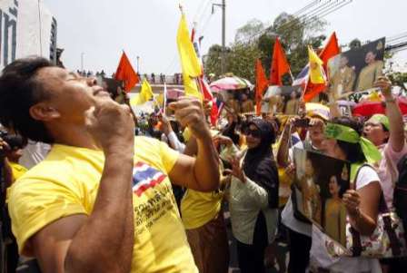 有大約300名親政府的“黃衫軍”周四到總理阿披實(shí)坐鎮(zhèn)的曼谷11步兵營(yíng)外面集會(huì),要求政府采取明確方案,以結(jié)束紅衫軍的“非法集會(huì)”和“恐怖主義”,并要求軍方運(yùn)用力量,結(jié)束目前的混亂狀態(tài)。