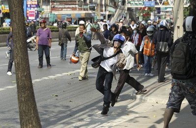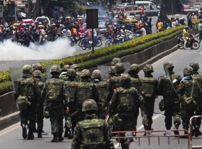 泰國(guó)軍隊(duì)在包圍紅衫軍的據(jù)點(diǎn)后,雙方發(fā)生嚴(yán)重沖突,軍隊(duì)使用實(shí)彈射擊。身在現(xiàn)場(chǎng)的記者稱(chēng),曼谷市中心的道路上看到燃燒的汽車(chē),聽(tīng)到槍聲、爆炸聲,天空有直升飛機(jī)盤(pán)旋,感覺(jué)如同戰(zhàn)場(chǎng)一樣。
