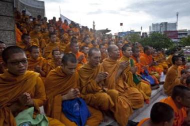 報道稱,泰國佛教協(xié)會邀請來自曼谷和周邊地區(qū)眾多寺廟的僧侶前往勝利紀念碑集會,并向總理阿披實傳達信息,呼吁政府停止殺害“手無寸鐵”的無辜民眾。