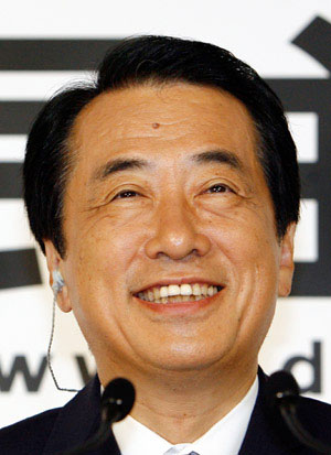 身為前任日本民主黨代表(相當于黨主席)的菅直人現任日本民主黨代表代行(相當于黨副主席),并兼任財政大臣。