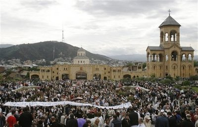 26日是格魯吉亞的獨立日。當(dāng)天的示威活動主要在位于市區(qū)的派恰澤國家體育場舉行,但稍后有大量示威者在街道上游行,前往第比利斯最主要的教堂。