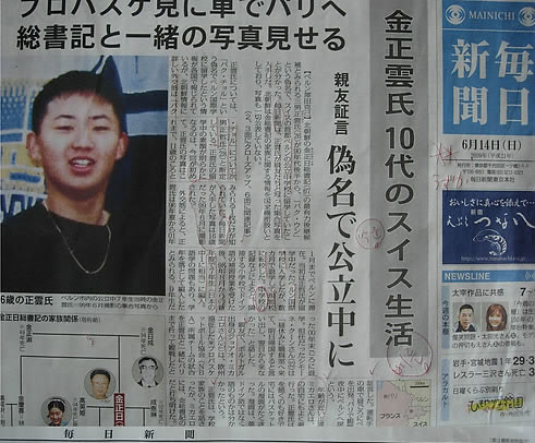 日本《每日新聞》14日在頭版中報(bào)道稱,該照片是金正云化名為“樸云”在瑞士波恩公立中學(xué)就讀7年級時,與同班同學(xué)一起拍的照片。照片中的金正云一頭短發(fā)、身穿黑色運(yùn)動T恤、胸前戴著金項(xiàng)鏈。