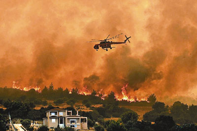希臘每年夏天的氣溫都偏高,由于干旱或縱火,當?shù)亟?jīng)常發(fā)生火患。這是自2007年希臘本土發(fā)生大火以來最嚴重的火災(zāi)。當年的大火造成70人死亡。