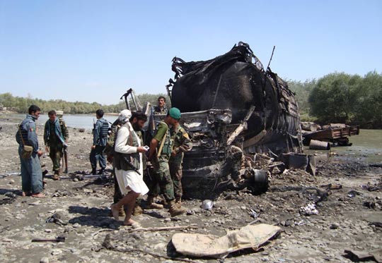 當(dāng)?shù)貢r(shí)間4日凌晨2點(diǎn)半,北約開始對塔利班劫持的油罐車發(fā)動進(jìn)攻。地點(diǎn)在昆都茲西南方向約7公里處。阿富汗政府一名發(fā)言人4日稱空襲炸死了90人,其中大部分為塔利班武裝分子。但當(dāng)時(shí)德國軍方表示有56名塔利班武裝分子喪生,沒有造成平民傷亡。