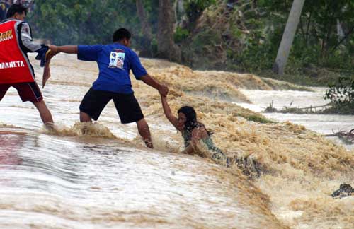 在首都馬尼拉北部山區(qū),持續(xù)一周的大雨掩埋了好幾座村莊。位于下游的許多城鎮(zhèn)被淹,莊稼被毀。