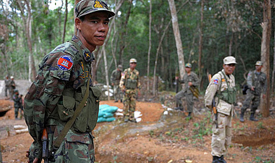 槍戰(zhàn)發(fā)生在距離11世紀柏威夏古寺東南方約15公里的地方,當時柬埔寨外長賀南洪正在古寺發(fā)表演講,促請柬埔寨軍隊要勇敢保衛(wèi)領(lǐng)土。賀南洪說:“政府的立場是我們希望通過雙邊談判,和平解決該爭端!
