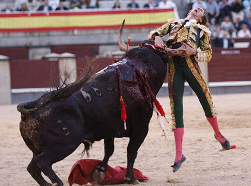 西班牙斗牛士Israel Lancho的肚子被公牛的尖角扎出一道長達(dá)8英寸(約20公分)的口子,西班牙的媒體都驚呼,牛角沒有扎中心臟簡直就是奇跡!