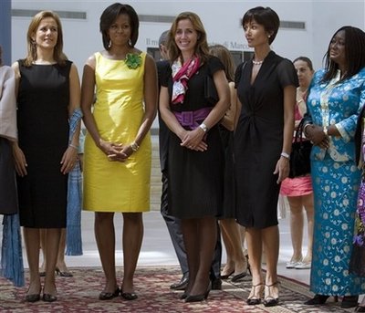 中新網7月11日電 G8領袖忙著討論世界大事,第一夫人們也忙得不得了。據(jù)臺灣東森新聞網報道,美國第一夫人米歇爾與奧巴馬一同訪問俄羅斯時,手上的名牌鱷魚價格昂貴,顯然改走起奢華風,連帶英國首相夫人莎拉也受到感染,在G8高峰會上,6小時換3套衣服。