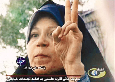 前總統(tǒng)拉夫桑賈尼46歲的女兒哈希米和4名親戚出席了示威活動(dòng),被當(dāng)局扣押,當(dāng)局解釋是要保護(hù)他們免受暴民襲擊。一名官員表示,他們已被移送至最近的軍營(yíng)里,直至動(dòng)亂浪潮平息為止。哈希米上周二在國(guó)營(yíng)電視臺(tái)大樓外,向穆薩維的支持者發(fā)表講話。拉夫桑賈尼是穆薩維的支持者,曾公開表示不滿內(nèi)賈德。哈希米被捕讓人感到意外,因?yàn)樽罡呔耦I(lǐng)袖哈梅內(nèi)伊前天才贊揚(yáng)拉夫桑賈尼為伊朗革命的“建筑師”。