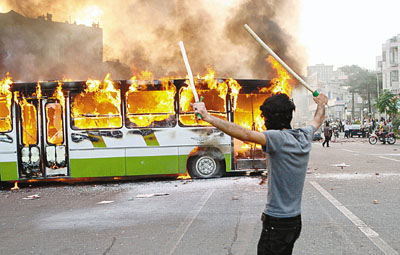 他說示威隊(duì)伍約1000人,后來大批駕駛電單車的軍警人員逼近,毆打他們,人群四散躲避之際,民兵卻帶著棍棒在小巷里埋伏。示威者霎時(shí)間無路可退,幸得巷里人家開門營救。當(dāng)示威者遠(yuǎn)離警察和民兵后,便高呼“伊朗已變成巴勒斯坦”等口號,駛經(jīng)的汽車都響號,公共汽車乘客揮手支持。