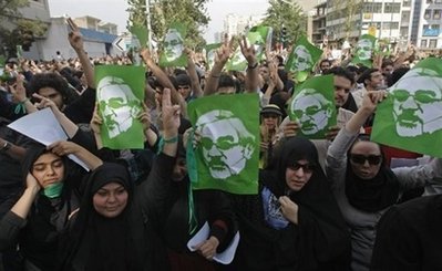 18日,幾萬名佩戴綠色標(biāo)志物的穆薩維支持者,高呼口號(hào)向德黑蘭一個(gè)主要廣場(chǎng)出發(fā),參加一年一度的“圣城(耶路撒冷)日”集會(huì)!笆コ(耶路撒冷)日”是伊朗每年舉行的反對(duì)以色列、支持巴勒斯坦的大會(huì)。伊朗總統(tǒng)內(nèi)賈德將在此次大會(huì)上發(fā)表演講。