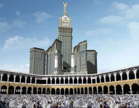 中新網(wǎng)4月15日電 據(jù)外電14日?qǐng)?bào)道,就在世界最高建筑迪拜塔還在人們的驚嘆聲中熠熠生輝之時(shí),不遠(yuǎn)處的沙特麥加,又一座超高建筑也將揭開(kāi)它壯麗的面紗?偢叱^(guò)800米的麥加“鐘樓”建成后將成為世界第二高的建筑,它的高度是倫敦大本鐘的6倍。