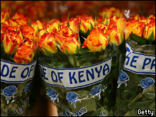 在非洲的肯尼亞,蔬菜和鮮花是肯尼亞的主要出口商品,占該國經(jīng)濟(jì)收入的百分之二十。奧塞林農(nóng)場是肯尼亞最大的鮮花農(nóng)場之一,每天出口一百多萬枝玫瑰。但是今天這里的工人沒有象往常那樣忙碌地包裝鮮花,卻在拆開玫瑰花的包裝盒。這些玫瑰本來在裝箱后應(yīng)該運往歐洲的市場。