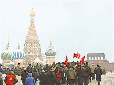 1月21日,在俄羅斯首都莫斯科,數(shù)百名俄共黨員及普通民眾排隊向紅場邊的列寧墓獻花圈。當(dāng)日,數(shù)百名俄共黨員及普通民眾舉行活動,紀(jì)念列寧逝世85周年。