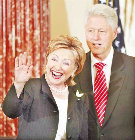 中新網(wǎng)2月4日電 美國新任國務(wù)卿希拉里2日在華府美國國務(wù)院宣誓就職,她致詞時(shí)刻意消遣自己和丈夫克林頓說,“我要好好感謝他,這輩子帶給我各式各樣的經(jīng)驗(yàn)”,而說到”各式各樣“時(shí)加重語氣,似乎暗指克林頓當(dāng)年的風(fēng)流韻事,引來哄堂大笑。