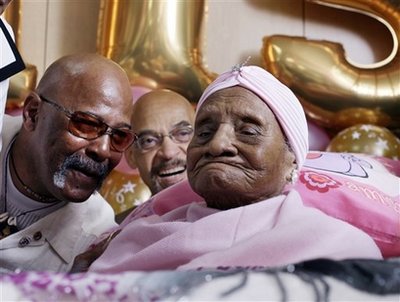 由于居住在葡萄牙的女人瑞在去年過世,貝恩斯由今年1月成為全球最老的人瑞,經(jīng)過吉尼斯世界紀(jì)錄委員會的認(rèn)證。她在美國大選中投下奧巴馬一票,成為最年長黑人選民,見證歷史,全國知名。但她現(xiàn)在住在醫(yī)院里,平常還喝一點酒。