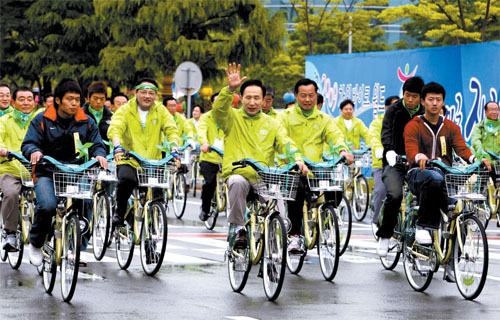 李明博當(dāng)天出席在慶南昌原舉行的“第一屆韓國(guó)自行車(chē)慶典”閉幕活動(dòng),并通過(guò)賀詞作了上述表述。他說(shuō),大城市應(yīng)建設(shè)可安全騎自行車(chē)的專(zhuān)用道,并制定保險(xiǎn)制度,同時(shí)為建立各項(xiàng)基礎(chǔ)設(shè)施做諸般工作。政府正在制定相關(guān)計(jì)劃。