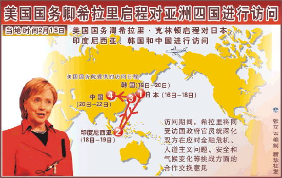 據(jù)美國(guó)《洛杉磯時(shí)報(bào)》網(wǎng)站14日?qǐng)?bào)道,昨天,就在國(guó)務(wù)卿希拉里·克林頓為其上任后的首次海外之行做準(zhǔn)備時(shí),她承諾將奉行“既不沖動(dòng)也不太注重意識(shí)形態(tài)的”外交政策。她此次在訪問(wèn)亞洲時(shí)將面臨一系列敏感問(wèn)題。