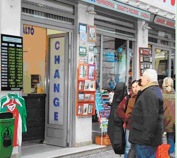 匈牙利福林對(duì)歐元的匯率21日跌破300。由于匯率暴跌,首都布達(dá)佩斯的許多持有美元的居民紛紛到貨幣兌換點(diǎn)換錢(qián),成為該市一道獨(dú)特的風(fēng)景。同一天,在布達(dá)佩斯南部最大的電子商城賽騰,由于家電產(chǎn)品大降價(jià),前來(lái)購(gòu)買(mǎi)家電的人們排起了30米的長(zhǎng)隊(duì)。商場(chǎng)職員介紹說(shuō):“人們認(rèn)為在本周福林繼續(xù)下跌前購(gòu)置商品可以獲利,因此蜂擁而至。我們已經(jīng)取消了部分商品的減價(jià)活動(dòng),我覺(jué)得今后我們會(huì)把歐元作為標(biāo)價(jià)幣種!