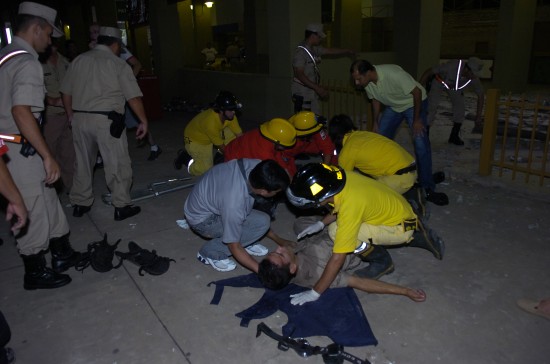 當(dāng)時(shí)體育場(chǎng)內(nèi)正在進(jìn)行足球賽,體育館頂部水泥石塊突然坍塌,兩名防暴警察不幸身亡。比賽不得不暫停40分鐘。