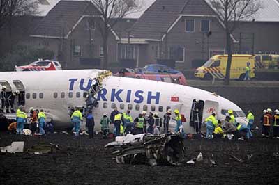 有現(xiàn)場(chǎng)目擊者稱,飛機(jī)在機(jī)場(chǎng)跑到附近的泥濘地墜毀,機(jī)身斷為三截,機(jī)尾、引擎與機(jī)身脫離。但慶幸的是,飛機(jī)未發(fā)生爆炸,也未起火。荷蘭官員稱此次空難造成傷亡人數(shù)如此至少實(shí)為“奇跡”。